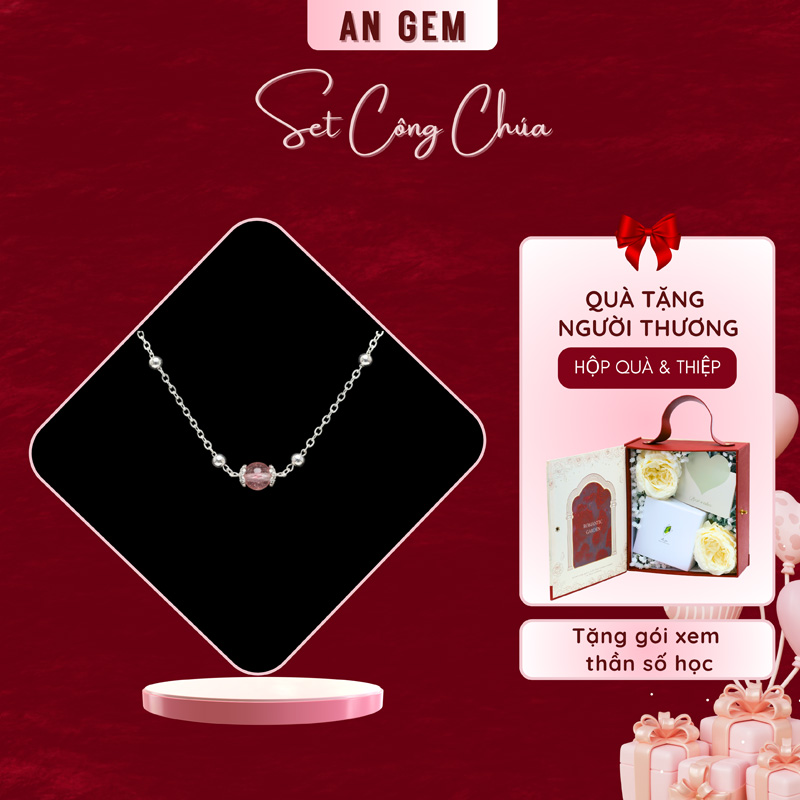 Set công chúa kèm vòng Thạch anh dâu hồng – Mạ bạc
