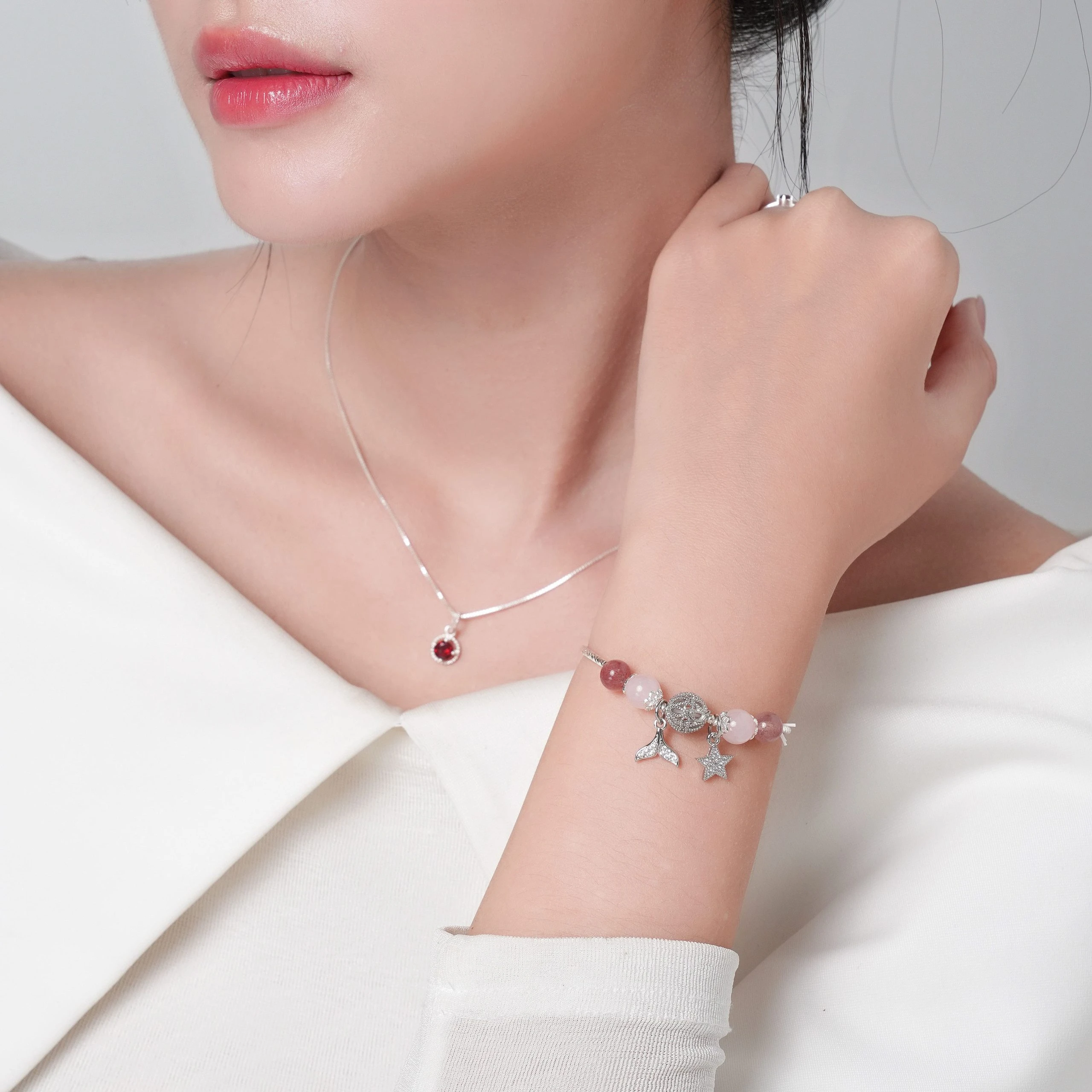 - Thạch Anh Dâu Hồng & Thạch Anh Hồng – Charm mạ bạc