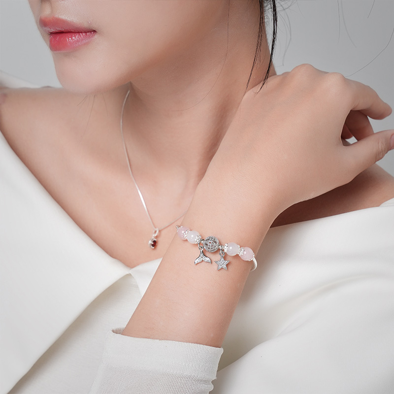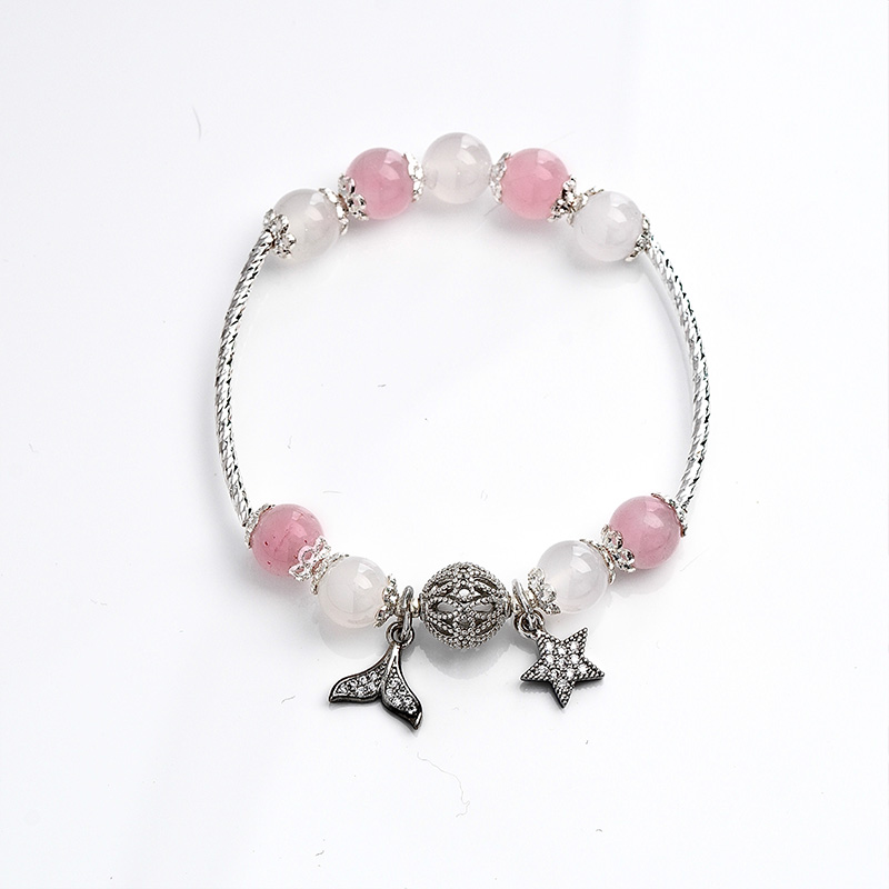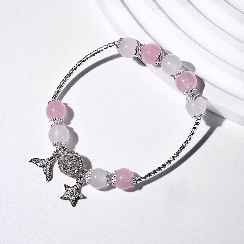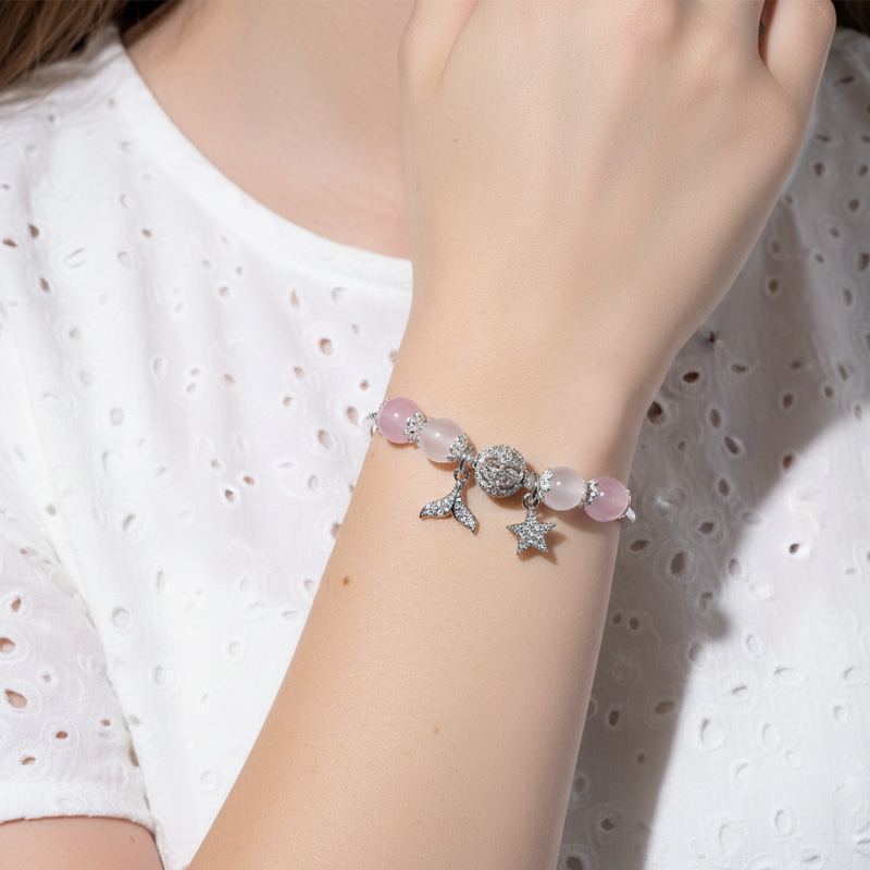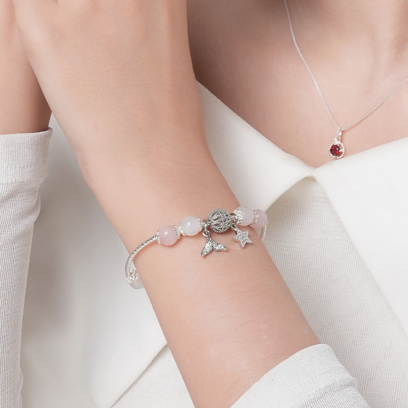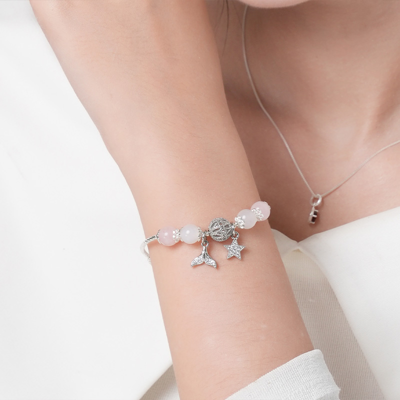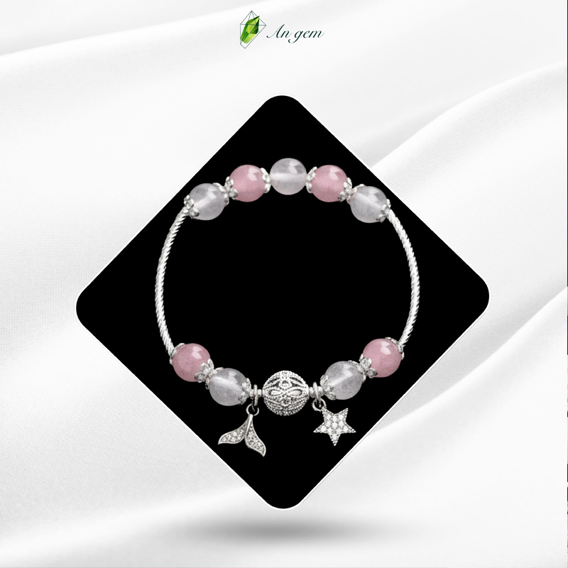 Vòng Thạch Anh Hồng & Mã Não Trắng – Charm Mạ Bạc / Mạ Vàng