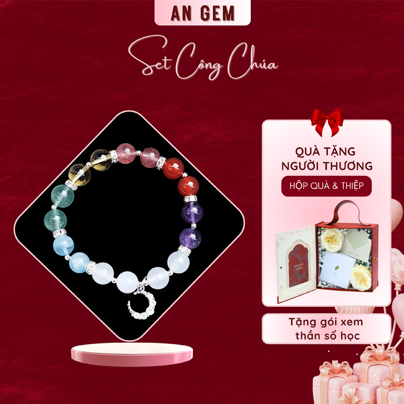 - Set Công Chúa (kèm vòng tay luân xa 7 loại đá – Charm mạ bạc)