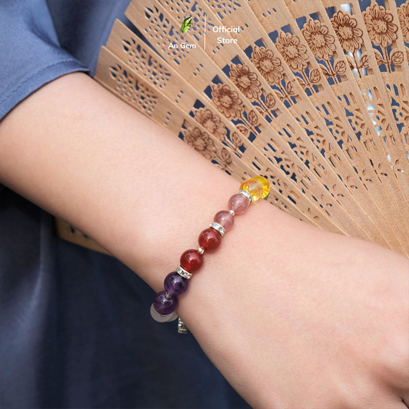 Vòng tay An Gem là món trang sức phong thủy được chế tác tinh xảo từ 7 loại đá tự nhiên quý hiếm, đại diện cho 7 luân xa năng lượng trong cơ thể. Sản phẩm mang đến sự hài hòa về thể chất – tinh thần – cảm xúc, giúp cân bằng năng lượng và thu hút may mắn, bình an cho người đeo.