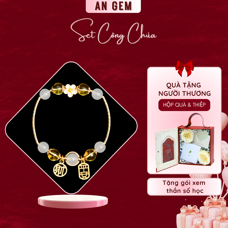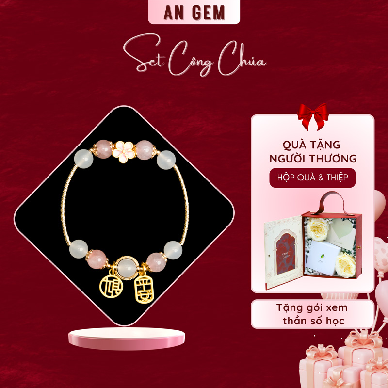 Vòng tay An Gem là món trang sức phong thủy được chế tác tinh xảo từ đá Thạch Anh (TA) và Mã Não Trắng tự nhiên có kiểm định, lấy cảm hứng từ sắc xuân rực rỡ.
